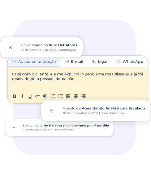 Todas as interações dentro da sua tratativa ficam registradas. Não perca nenhum detalhe, saiba quem fez cada ação.