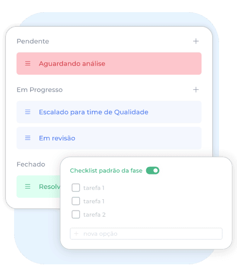 Crie fluxos específicos para cada necessidade ou tipo de cliente. Cada fluxo pode ter fases e tarefas diferentes, responsáveis-padrão e prazo de resolução específico.