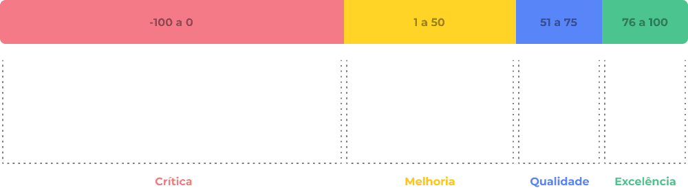 - Zona de excelência (76 a 100): alta lealdade, recomendações consistentes e uma experiência do cliente bem estruturada.